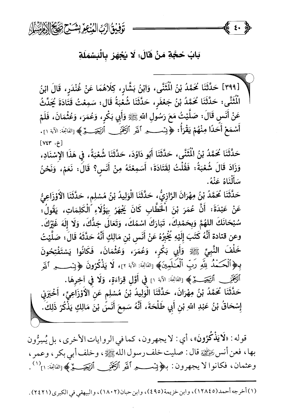 بَابُ حُجَّةِ مَنْ قَالَ: لَا يُجْهَرُ بِالْبَسْمَلَةِ