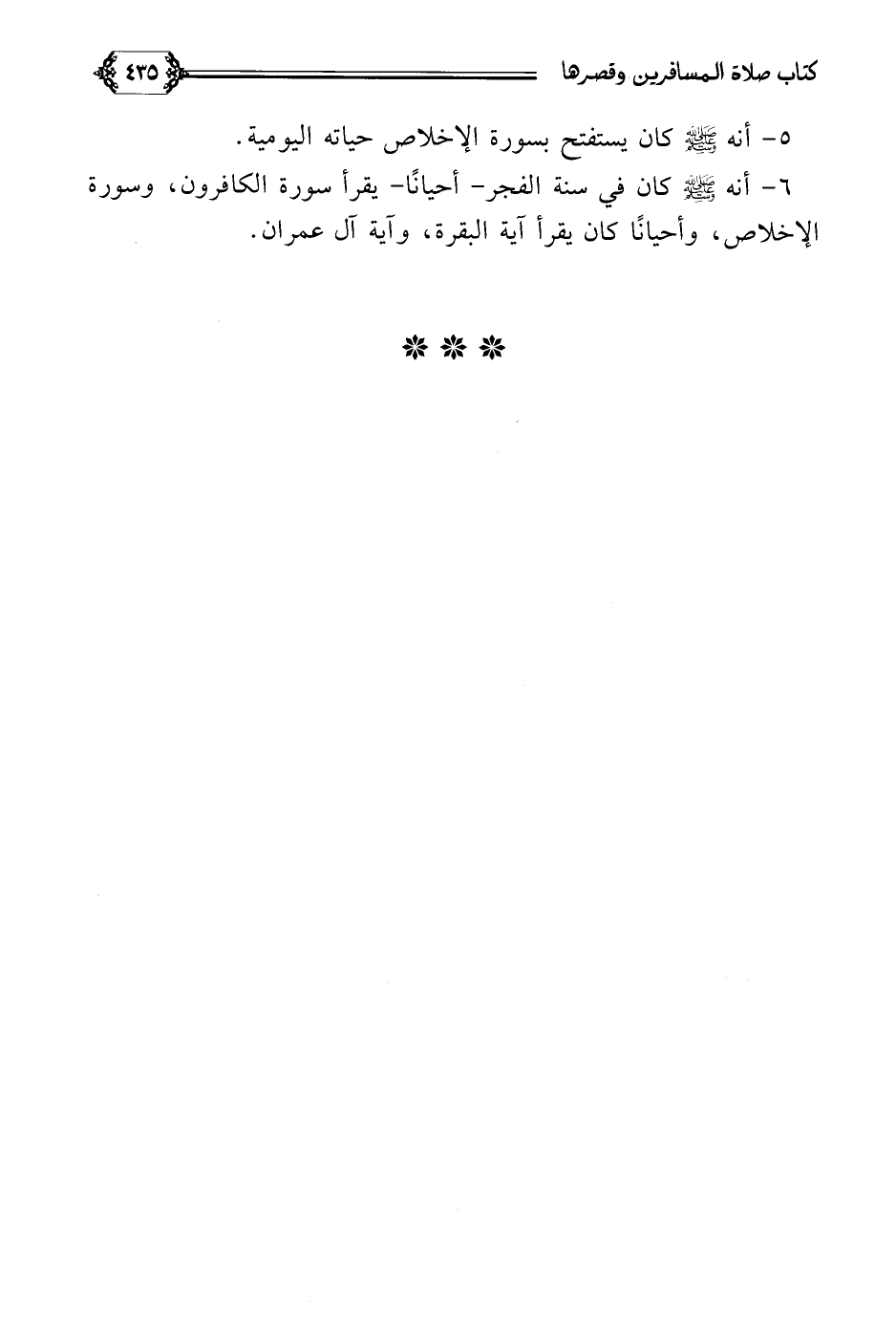 ٦. أنه صلى الله عليه وسلم كان في سنة الفجر- أحيانًا- يقرأ سورة الكافرون، وسورة الإخلاص، وأحيانًا كان يقرأ آية البقرة، وآية آل عمران.