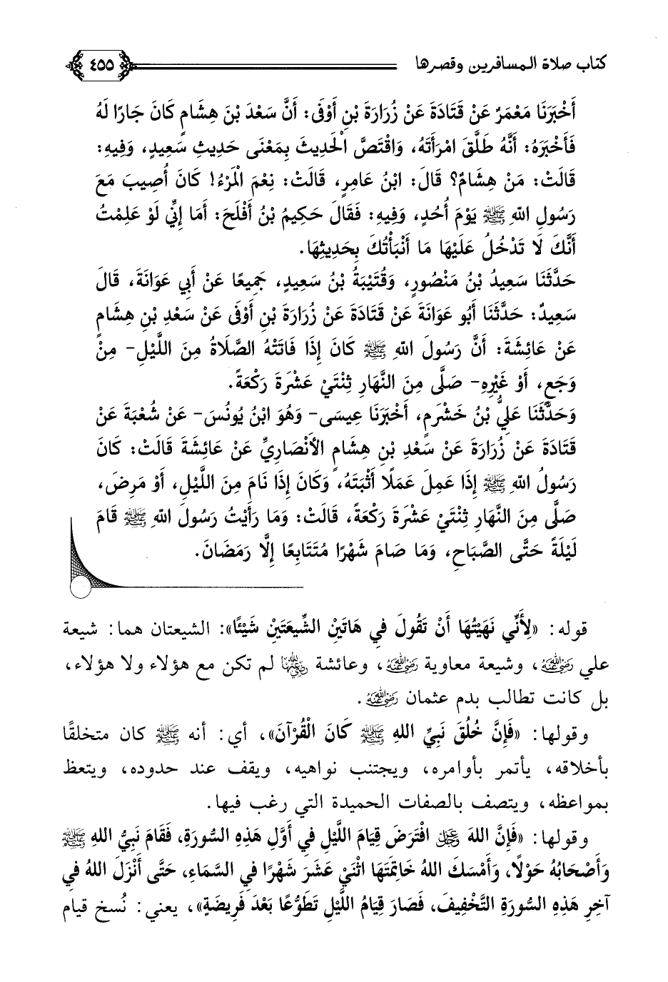 حَدَّثَنَا سَعِيدُ بْنُ مَنْصُورٍ، وَقُتَيْبَةُ بْنُ سَعِيدٍ، جَمِيعًا عَنْ أَبِي عَوَانَةَ، قَالَ سَعِيدٌ: حَدَّثَنَا أَبُو عَوَانَةَ عَنْ قَتَادَةَ عَنْ زُرَارَةَ بْنِ أَوْفَى عَنْ سَعْدِ بْنِ هِشَامٍ عَنْ عَائِشَةَ: أَنَّ رَسُولَ اللَّهِ صلى الله عليه وسلم كَانَ إِذَا فَاتَتْهُ الصَّلَاةُ مِنَ اللَّيْلِ- مِنْ وَجَعٍ، أَوْ غَيْرِهِ- صَلَّى مِنَ النَّهَارِ ثِنْتَيْ عَشْرَةَ رَكْعَةً.