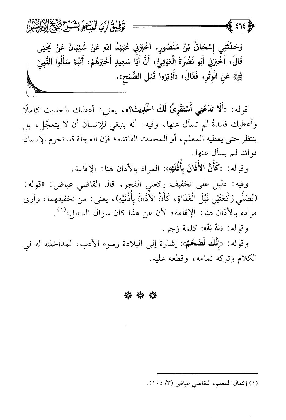 (¬١) إكمال المعلم، للقاضي عياض (٣/ ١٠٤).