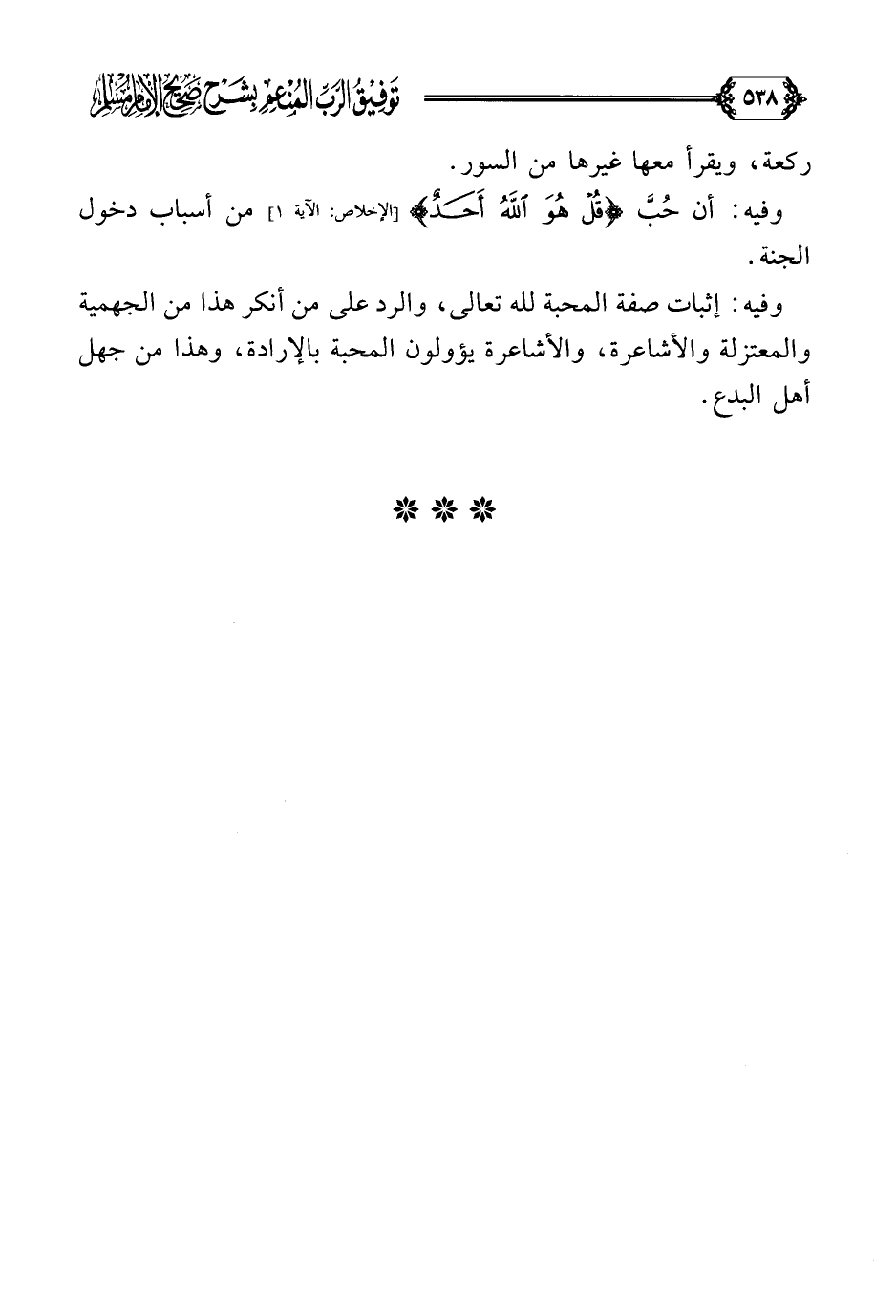 وفيه: أن حُبَّ ((قُلْ هُوَ اللهُ أَحَدٌ)) من أسباب دخول الجنة.