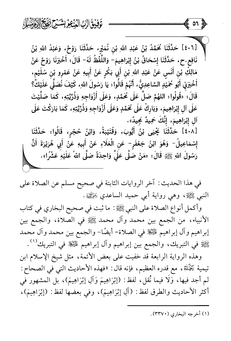 في هذا الحديث: آخر الروايات الثابتة في صحيح مسلم عن الصلاة على النبي صلى الله عليه وسلم، وهي رواية أبي حميد الساعدي رضي الله عنه.
