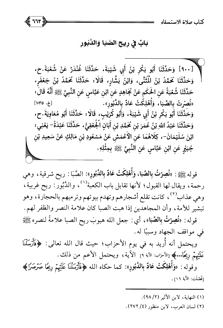 [٩٠٠] وَحَدَّثَنَا أَبُو بَكْرِ بْنُ أَبِي شَيْبَةَ، حَدَّثَنَا غُنْدَرٌ عَنْ شُعْبَةَ. ح، وَحَدَّثَنَا مُحَمَّدُ بْنُ الْمُثَنَّى، وَابْنُ بَشَّارٍ، قَالَا: حَدَّثَنَا مُحَمَّدُ بْنُ جَعْفَرٍ، حَدَّثَنَا شُعْبَةُ عَنِ الحَكَمِ عَنْ مُجَاهِدٍ عَنِ ابْنِ عَبَّاسٍ عَنِ النَّبِيِّ صلى الله عليه وسلم أَنَّهُ قَالَ: ((نُصِرْتُ بِالصَّبَا، وَأُهْلِكَتْ عَادٌ بِالدَّبُورِ)).