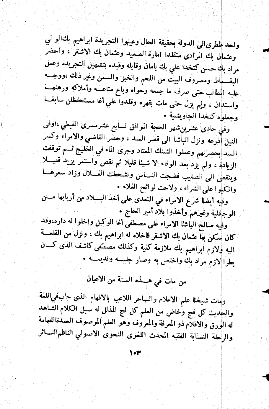 وفيه أيضا شرع الأمراء في التعدي على أخذ البلاد من أربابها من الوجاقلية وغيرهم وأخذوا بلاد أمير الحاج.