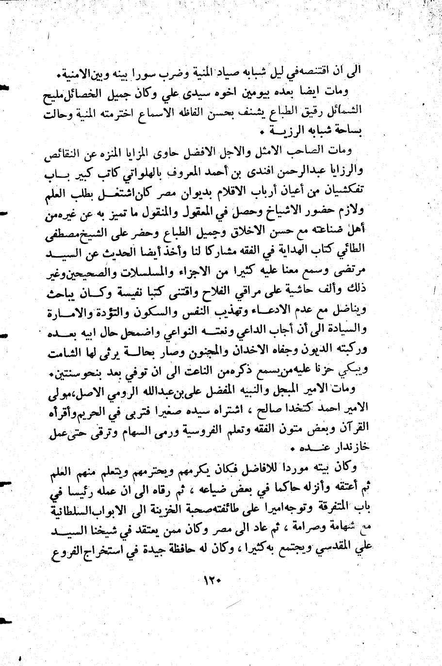 ومات الأمير المبجل والنبيه المفضل علي بن عبد الله الرومي الأصل مولى الأمير أحمد كتخدا صالح اشتراه سيده صغيرا فتربى في الحريم وأقرأه القرآن وبعض متون الفقه وتعلم الفروسة ورمى السهام وترقى حتى عمل خازندار عنده.