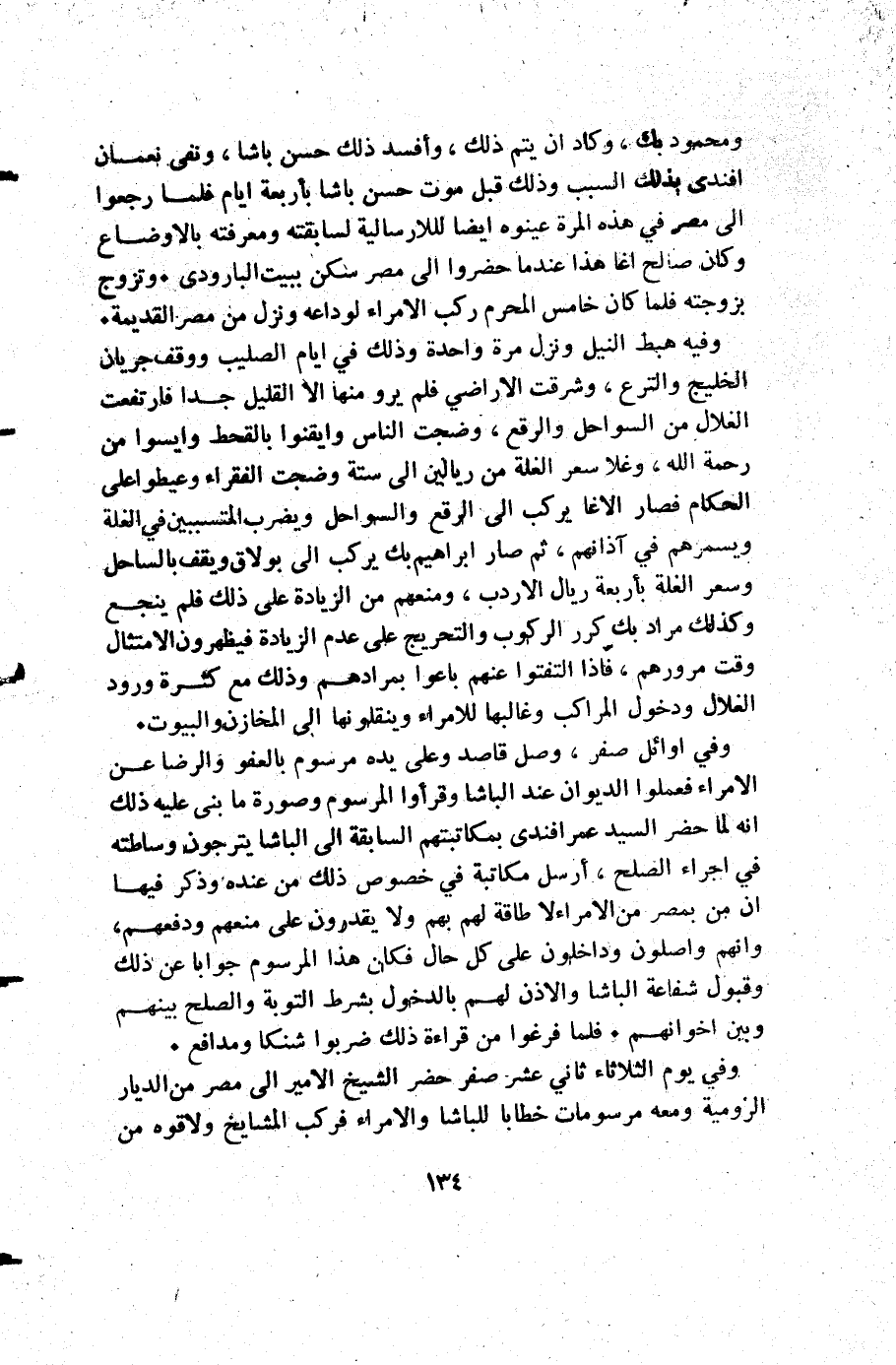 ومحمود بك وكاد أن يتم ذلك وأفسد ذلك حسن باشا ونفى نعمان أفندي بذلك السبب وذلك قبل موت حسن باشا بأربعة أيام فلما رجعوا إلى مصر في هذه المرة عينوه أيضا لللإرسالية لسابقته ومعرفته بالاوضاع وكان صالح اغا هذا عندما حضروا إلى مصر سكن ببيت البارودي وتزوج بزوجته فلما كان خامس المحرم ركب الأمراء لوداعه ونزل من مصر القديمة.