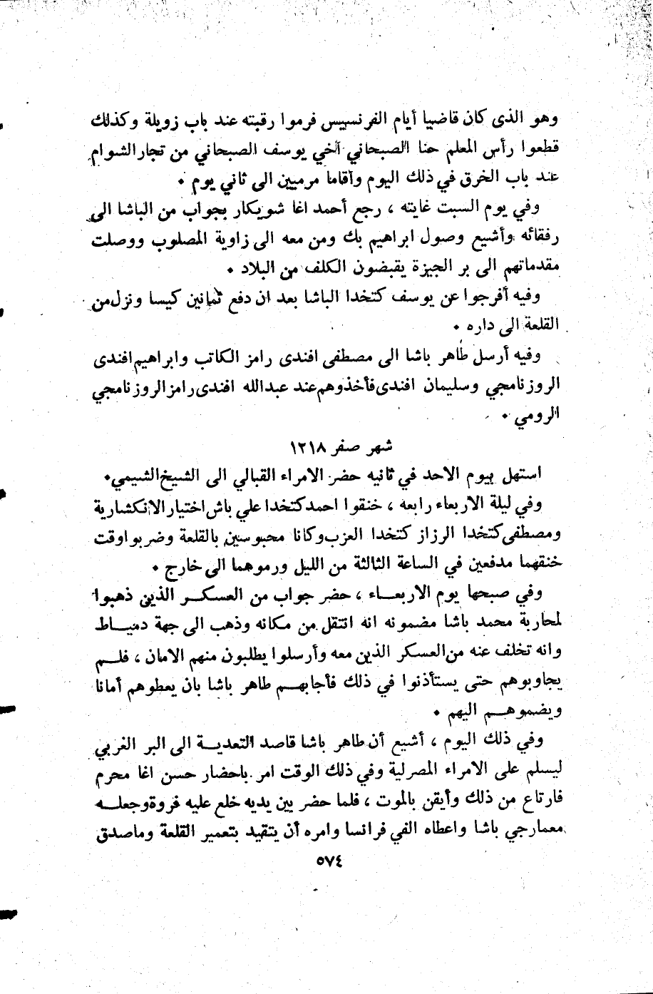 وفيه أرسل طاهر باشا إلى مصطفى أفندي رامز الكاتب وإبراهيم أفندي الروزنامجي وسليمان أفندي فأخذوهم عند عبد الله أفندي رامز الروزنامجي الرومي.