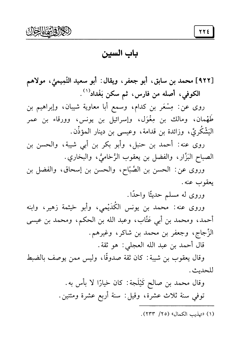 (¬١) "تهذيب الكمال" (٢٥/ ٢٣٣).
