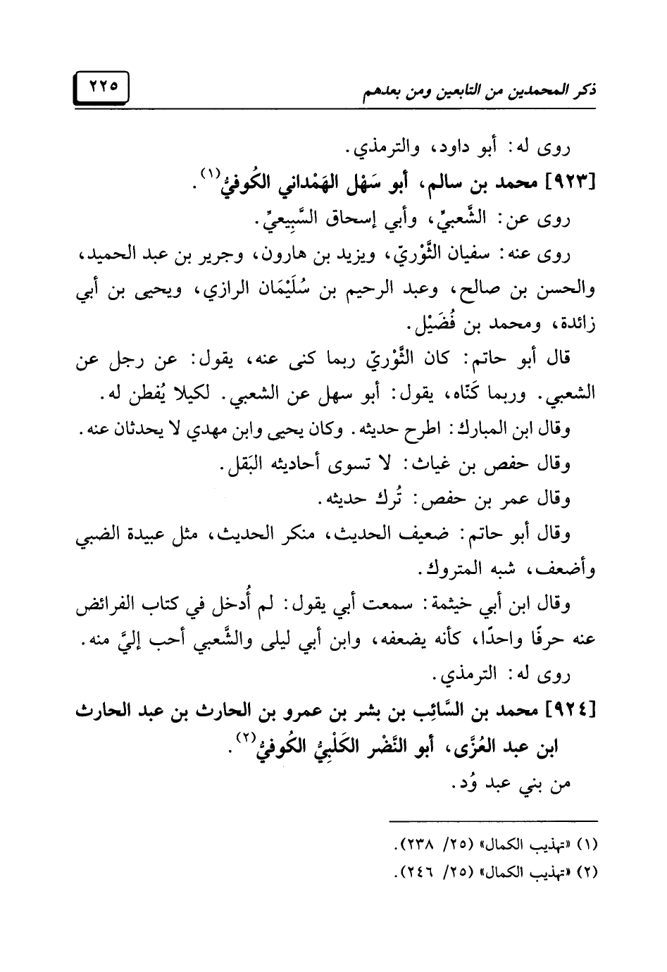 [٩٢٣] محمد بن سالم، أبو سَهْل الهَمْداني الكُوفِيُّ (¬١).