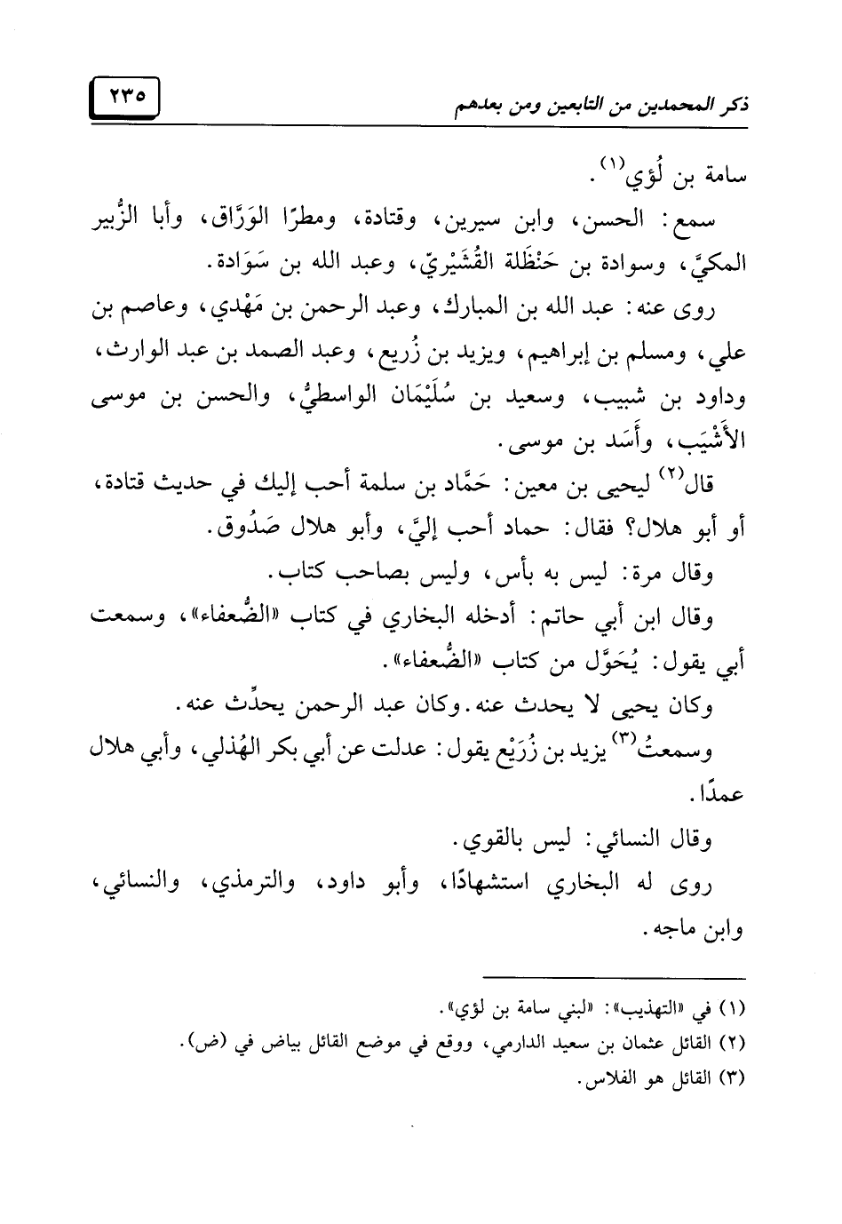 (¬١) في "التهذيب": "لبني سامة بن لؤي".
