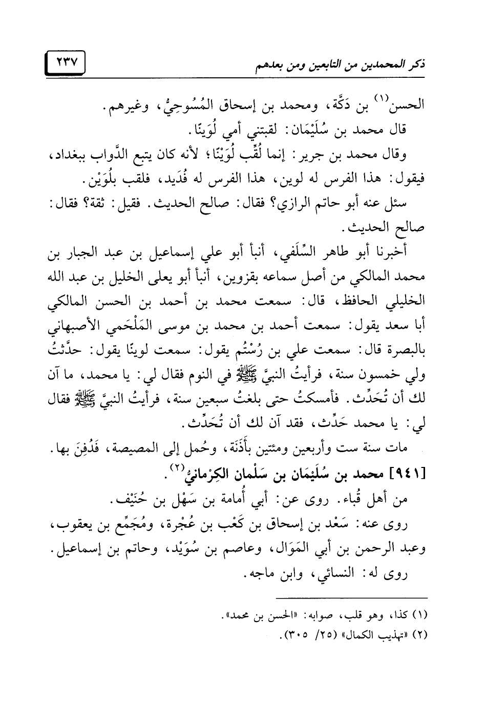 (¬٢) "تهذيب الكمال" (٢٥/ ٣٠٥).