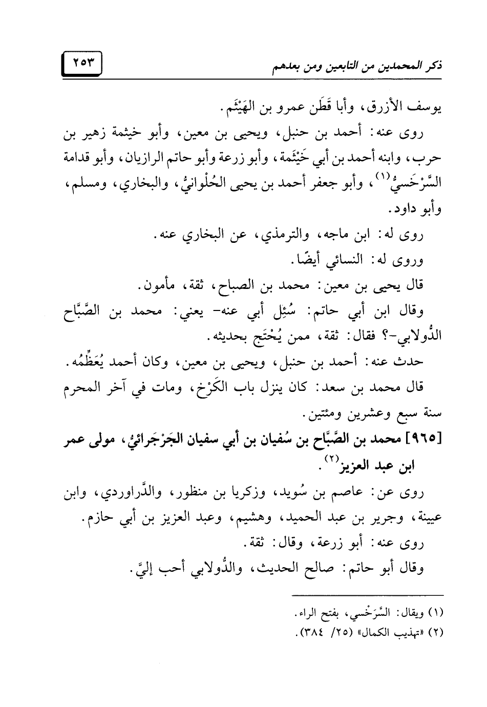 [٩٦٥] محمد بن الصَّبَّاح بن سُفيان بن أبي سفيان الجَرْجَرائيُّ، مولي عمر ابن عبد العزيز (¬٢).