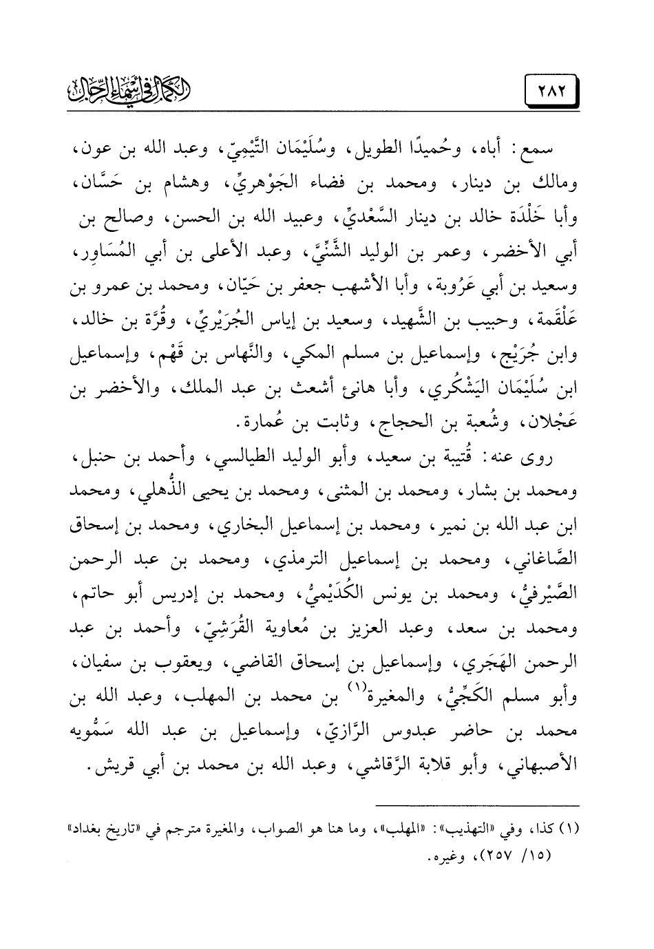 (¬١) كذا، وفي "التهذيب": "المهلب"، وما هنا هو الصواب، والمغيرة مترجم في "تاريخ بغداد" (١٥/ ٢٥٧)، وغيره.
