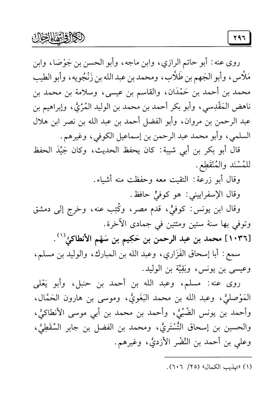 [١٠٣٦] محمد بن عبد الرحمن بن حَكِيم بن سَهْم الأنطاكيُّ (¬١).