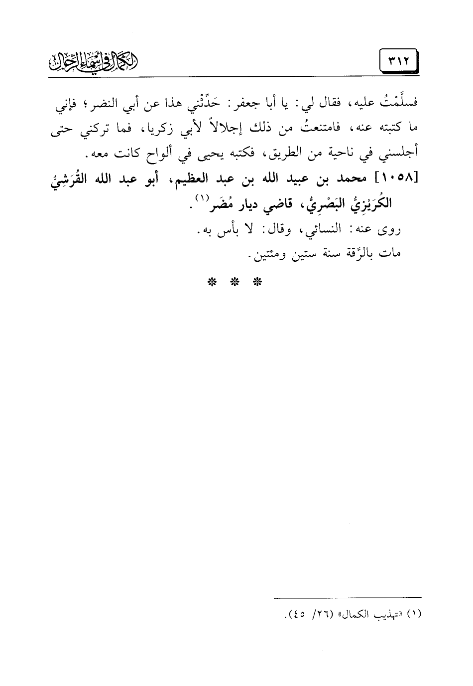 (¬١) "تهذيب الكمال" (٢٦/ ٤٥).