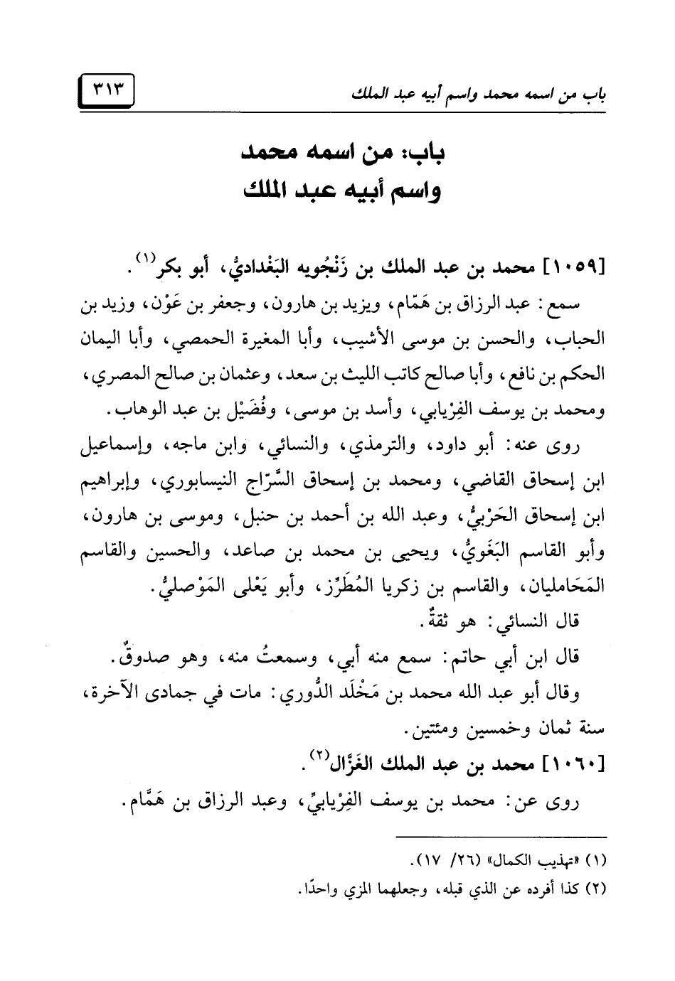 باب: من اسمه محمد واسم أبيه عبد الملك