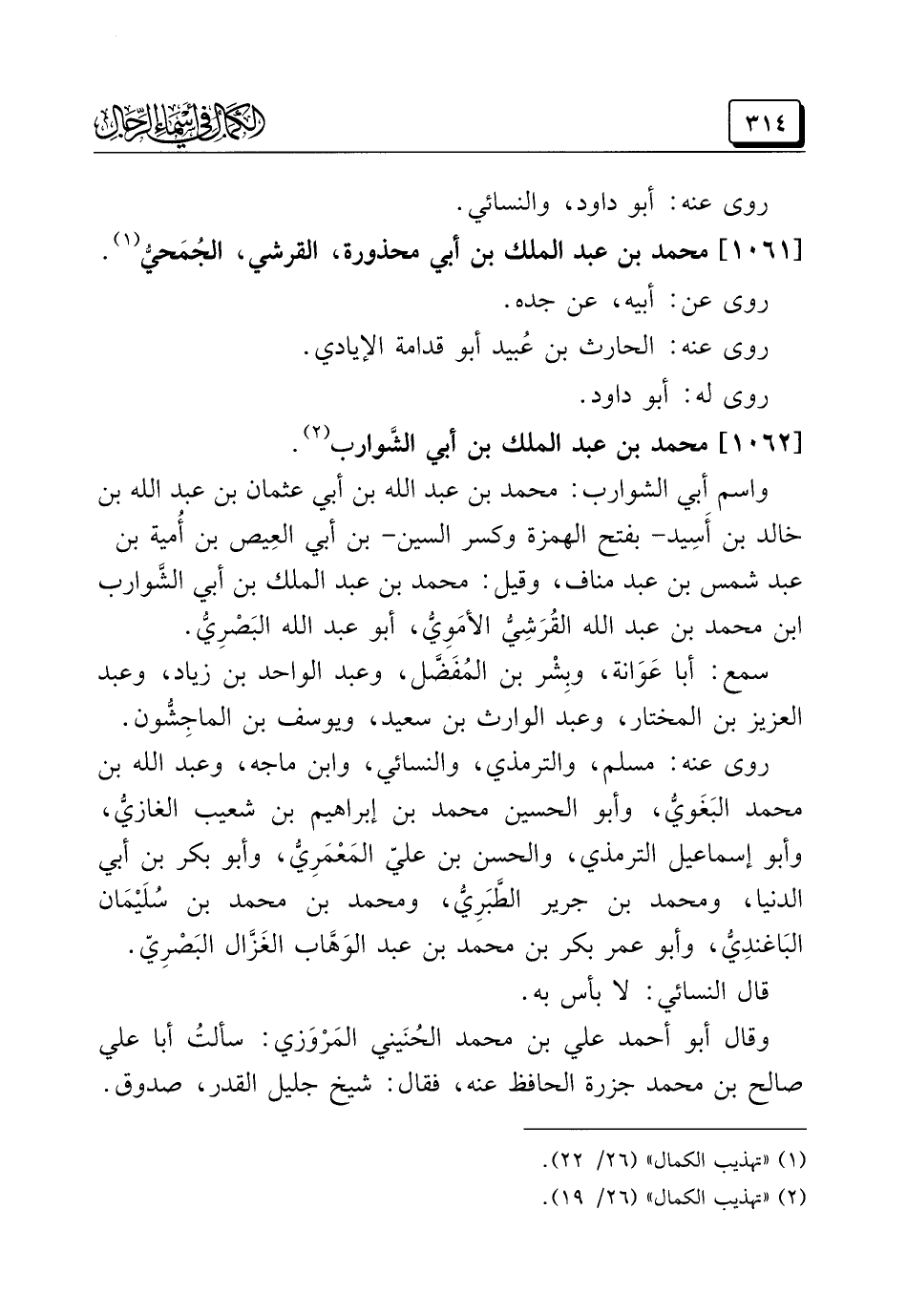 (¬٢) "تهذيب الكمال" (٢٦/ ١٩).