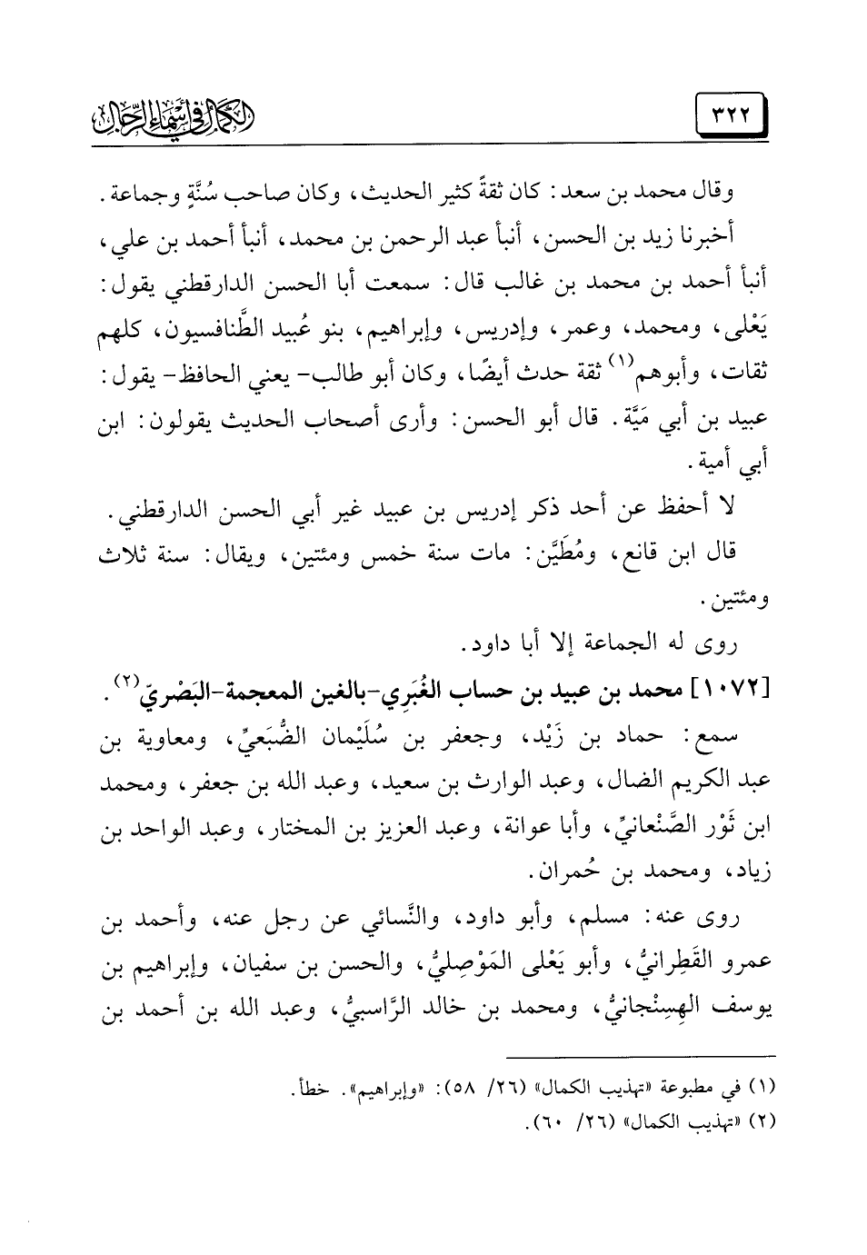 (¬٢) "تهذيب الكمال" (٢٦/ ٦٠).