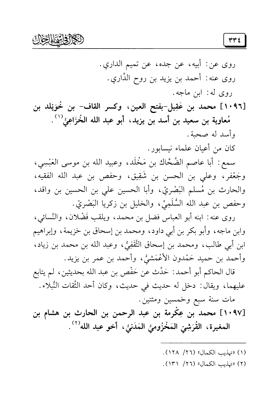 (¬١) "تهذيب الكمال" (٢٦/ ١٢٨).