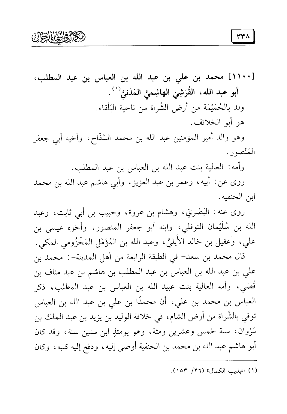 (¬١) "تهذيب الكمال" (٢٦/ ١٥٣).