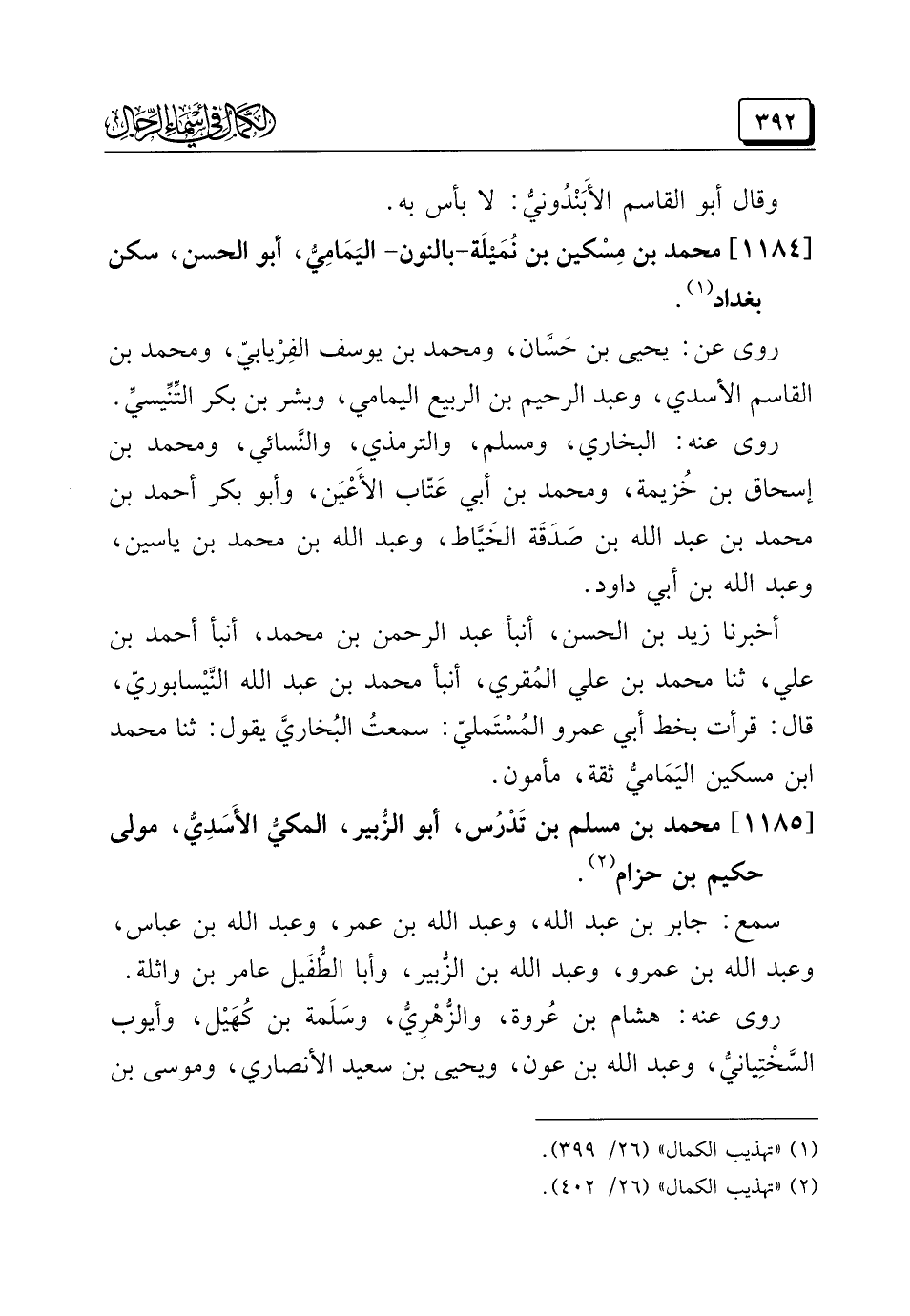 (¬٢) "تهذيب الكمال" (٢٦/ ٤٠٢).