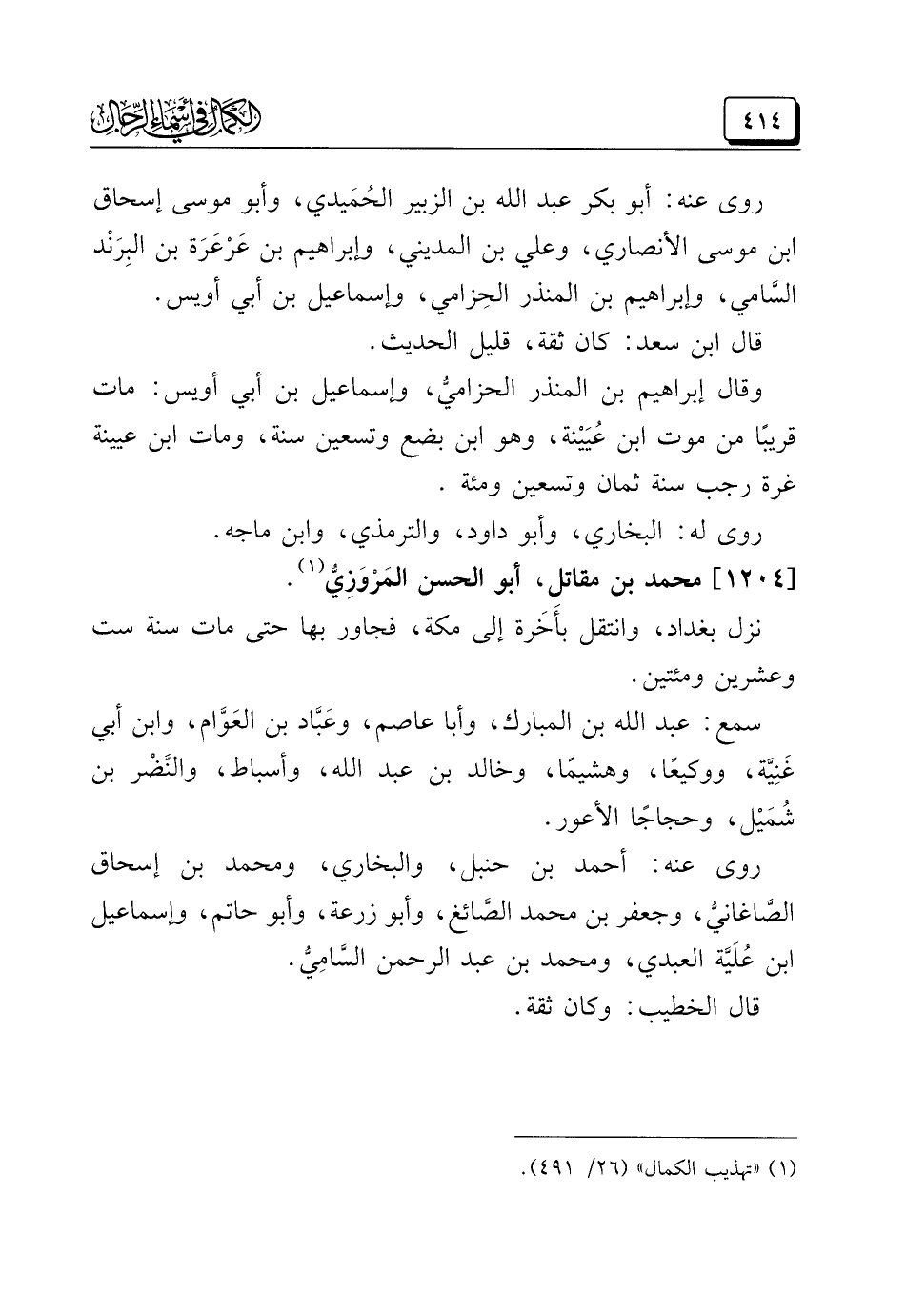 (¬١) "تهذيب الكمال" (٢٦/ ٤٩١).