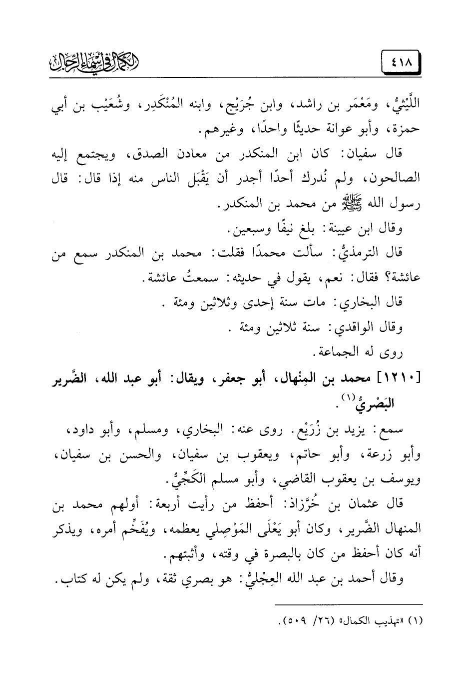 (¬١) "تهذيب الكمال" (٢٦/ ٥٠٩).