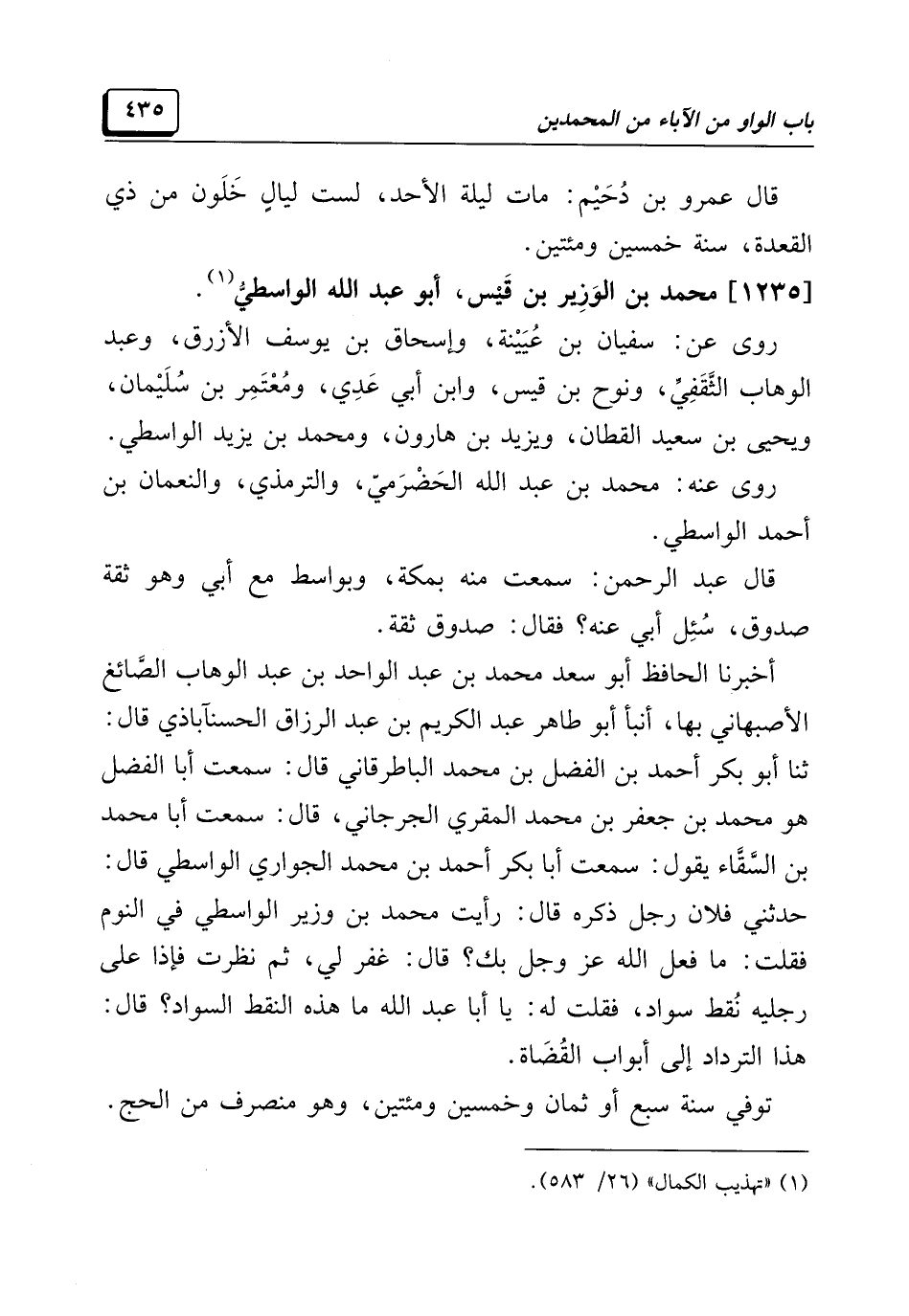 [١٢٣٥] محمد بن الوَزِير بن قَيْس، أبو عبد الله الواسطيُّ (¬١).