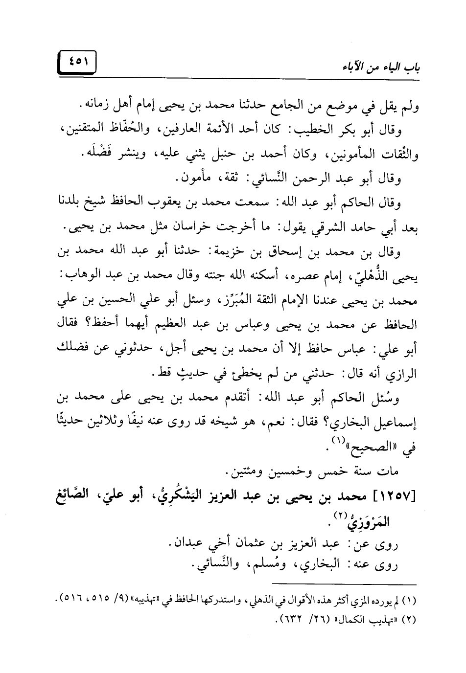 (¬١) لم يورده المزي أكثر هذه الأقوال في الذهلي، واستدركها الحافظ في "تهذيبه" (٩/ ٥١٥، ٥١٦).
