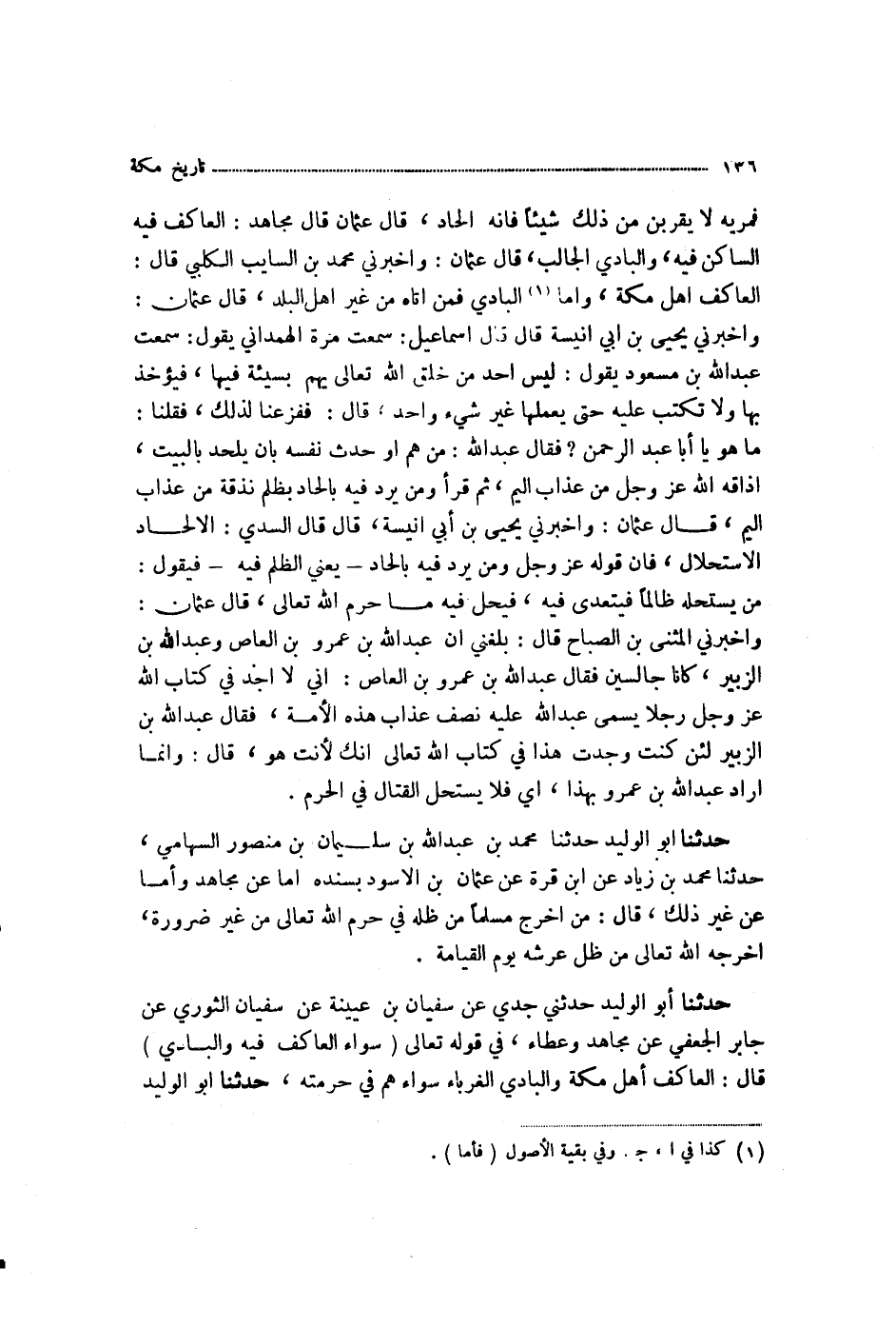 حَدَّثَنِي جَدِّي، عَنْ سُفْيَانَ بْنِ عُيَيْنَةَ، عَنْ سُفْيَانَ الثَّوْرِيِّ، عَنْ جَابِرٍ الْجُعْفِيِّ، عَنْ مُجَاهِدٍ، وَعَطَاءٍ، فِي قَوْلِهِ تَعَالَى: {§سَوَاءً الْعَاكِفُ فِيهِ وَالْبَادِ} [الحج: 25] قَالَ: «الْعَاكِفُ أَهْلُ مَكَّةَ، وَالْبَادِي الْغُرَبَاءُ، سَوَاءٌ هُمْ فِي حُرْمَتِهِ»