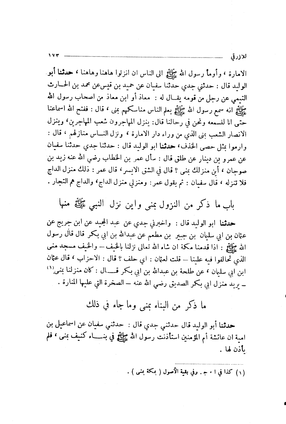 §مَا ذُكِرَ مِنَ الْبِنَاءِ بِمِنًى، وَمَا جَاءَ فِي ذَلِكَ