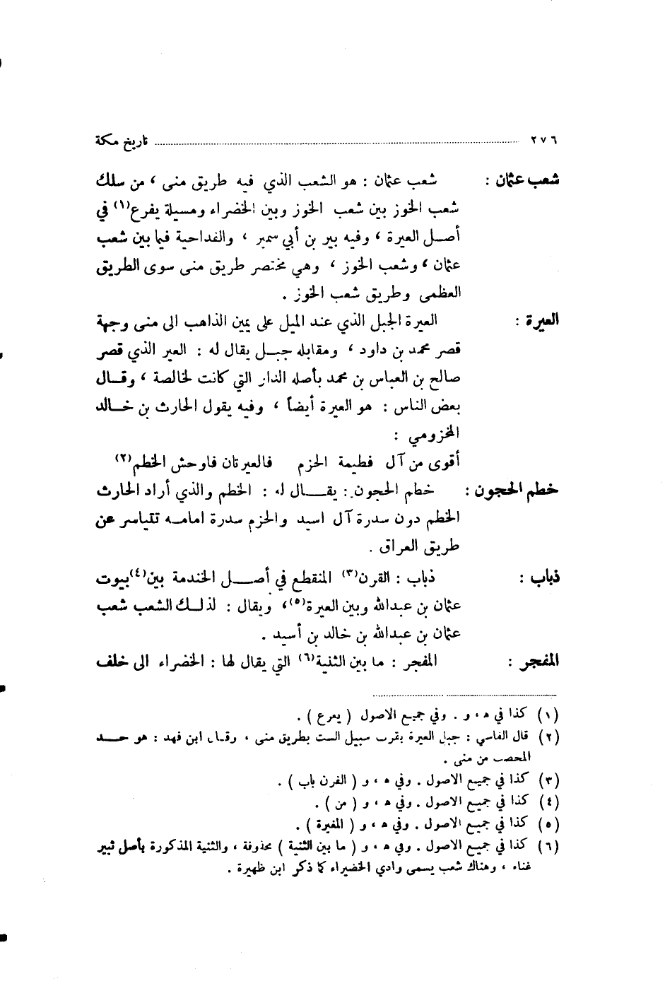 خَطْمُ الْحَجُونِ يُقَالُ لَهُ الْخَطْمُ، وَالَّذِي أَرَادَ الْحَارِثُ الْخَطْمُ دُونَ سِدْرَةِ آلِ أُسَيْدٍ، وَالْحَزْمُ سِدْرَةٌ أَمَامَهُ تَتَيَاسَرُ عَنْ طَرِيقِ الْعِرَاقِ ذُبَابٌ: الْقَرْنُ الْمُنْقَطِعُ فِي أَصْلِ الْخَنْدَمَةِ بَيْنَ بُيُوتِ عُثْمَانَ بْنِ عَبْدِ اللَّهِ، وَبَيْنَ الْعِيرَةِ وَيُقَالُ لِذَلِكَ الشِّعْبِ شِعْبُ عُثْمَانَ بْنِ عَبْدِ اللَّهِ بْنِ خَالِدِ بْنِ أَسِيدٍ الْمَفْجَرُ: مَا بَيْنَ الثَّنِيَّةِ الَّتِي يُقَالُ لَهَا الْخَضْرَاءُ إِلَى خَلْفِ