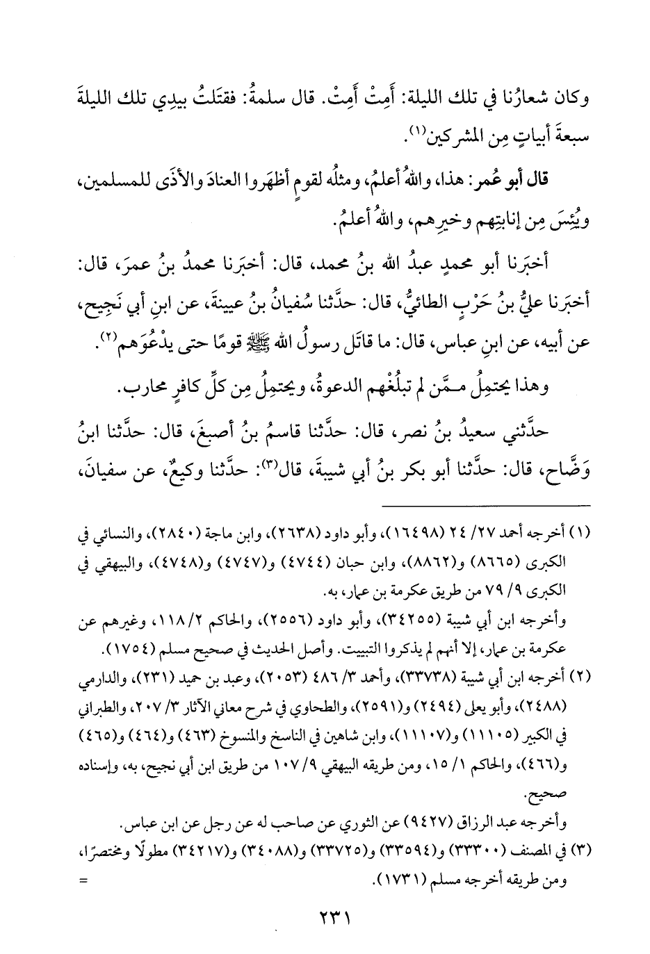 حدَّثني سعيدُ بنُ نصر، قال: حدَّثنا قاسمُ بنُ أصبغَ، قال: حدَّثنا ابنُ وَضَّاح، قال: حدَّثنا أبو بكر بنُ أبي شيبةَ، قال (¬٣): حدَّثنا وكيعٌ، عن سفيانَ،
