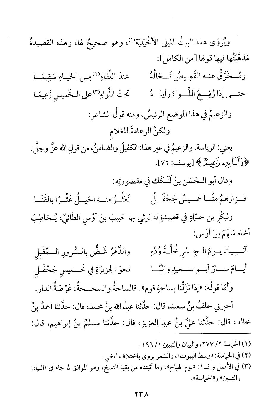 (¬١) الحماسة ٢/ ٢٧٧، والبيان والتبيين ١/ ١٩٦.