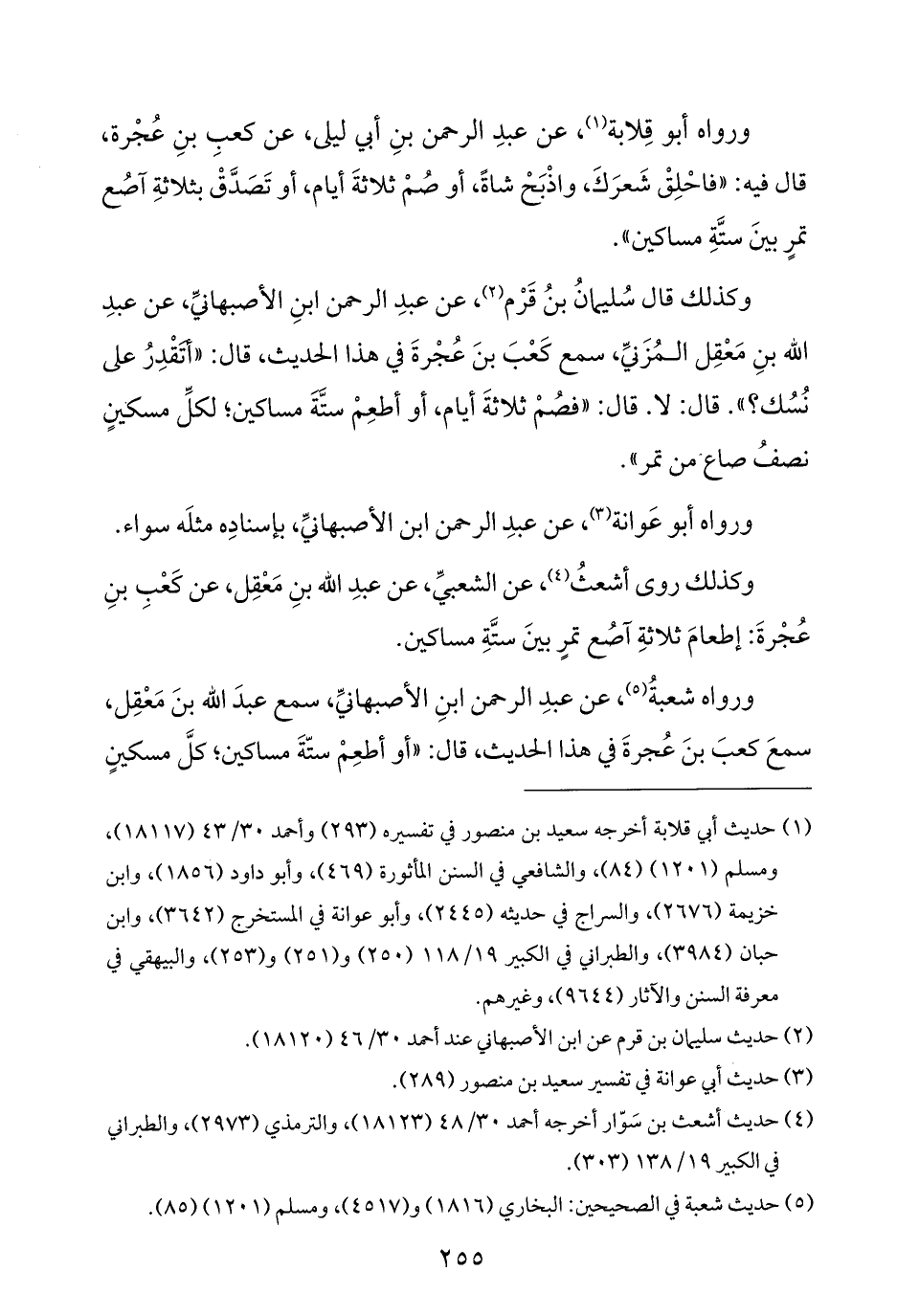 ورواه شعبةُ (¬٥)، عن عبدِ الرحمن بنِ الأصبهانيِّ، سمع عبدَ الله بنَ مَعْقِل، سمعَ كعبَ بنَ عُجرةَ في هذا الحديث، قال: "أو أطعِمْ ستّةَ مساكين؛ كلَّ مسكينٍ