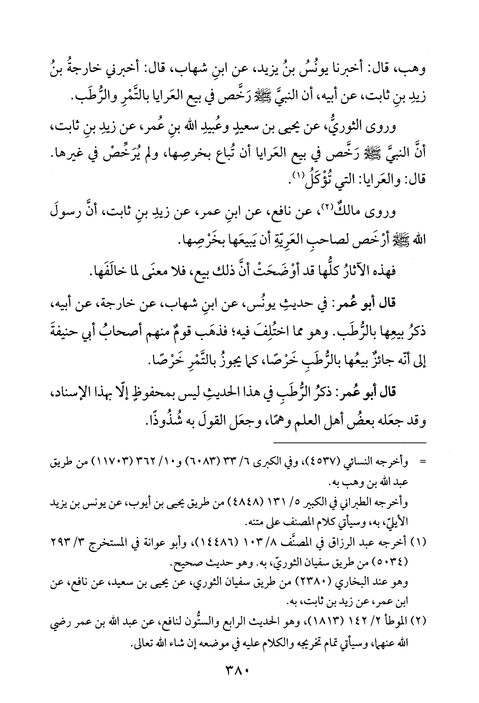 وروى مالكٌ (¬٢)، عن نافع، عن ابنِ عمر، عن زيدِ بنِ ثابت، أنَّ رسولَ الله - صلى الله عليه وسلم - أرْخَص لصاحبِ العَرِيّةِ أن يَبيعَها بخَرْصِها.