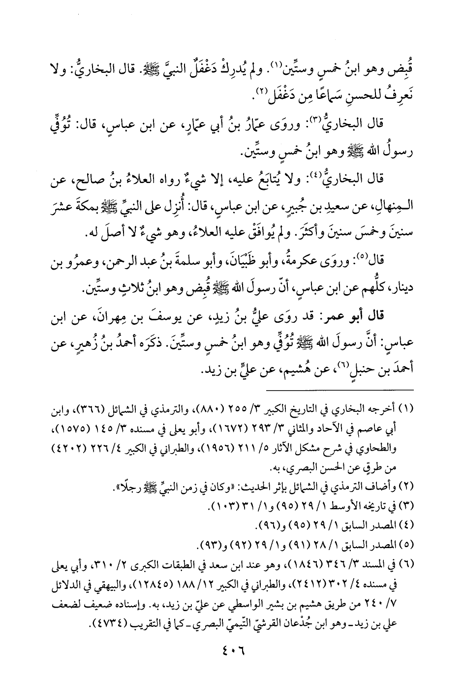 قال (¬٥): وروَى عكرمةُ، وأبو ظَبْيَانَ، وأبو سلمةَ بنُ عبد الرحمن، وعمرُو بن دينار، كلُّهم عن ابن عباسٍ، أنّ رسولَ الله - صلى الله عليه وسلم - قُبِض وهو ابنُ ثلاثٍ وستِّين.