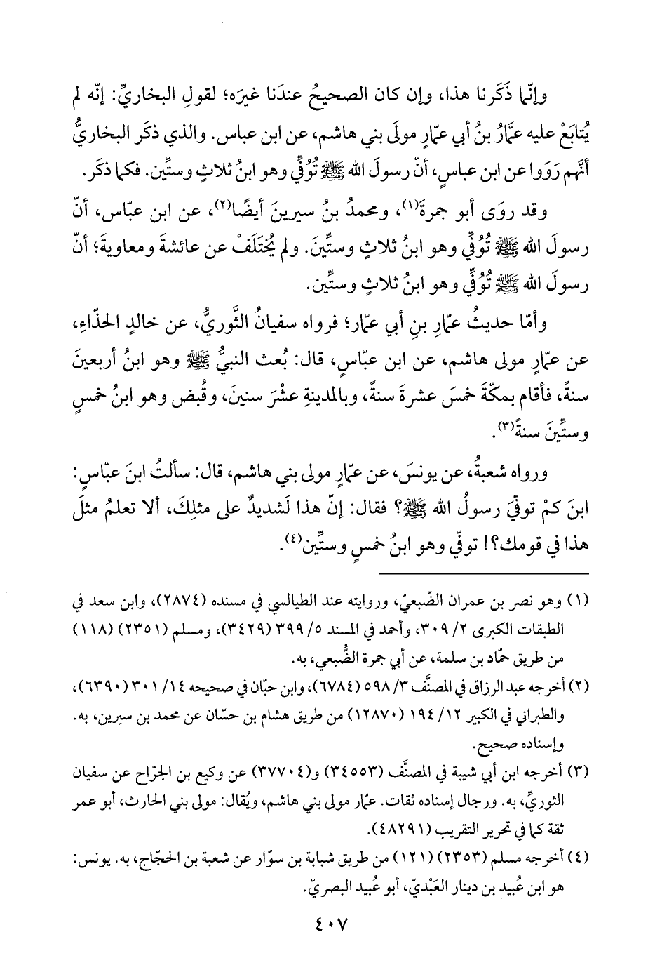وإنّما ذَكَرنا هذا، وإن كان الصحيحُ عندَنا غيرَه؛ لقولِ البخاريِّ: إنّه لم يُتابَعْ عليه عمَّارُ بنُ أبي عمّارٍ مولَى بني هاشم، عن ابن عباس. والذي ذكَر البخاريُّ أنَّهم رَوَوا عن ابن عباسٍ، أنّ رسولَ الله - صلى الله عليه وسلم - تُوُفِّي وهو ابنُ ثلاثٍ وستِّين. فكما ذكَر.