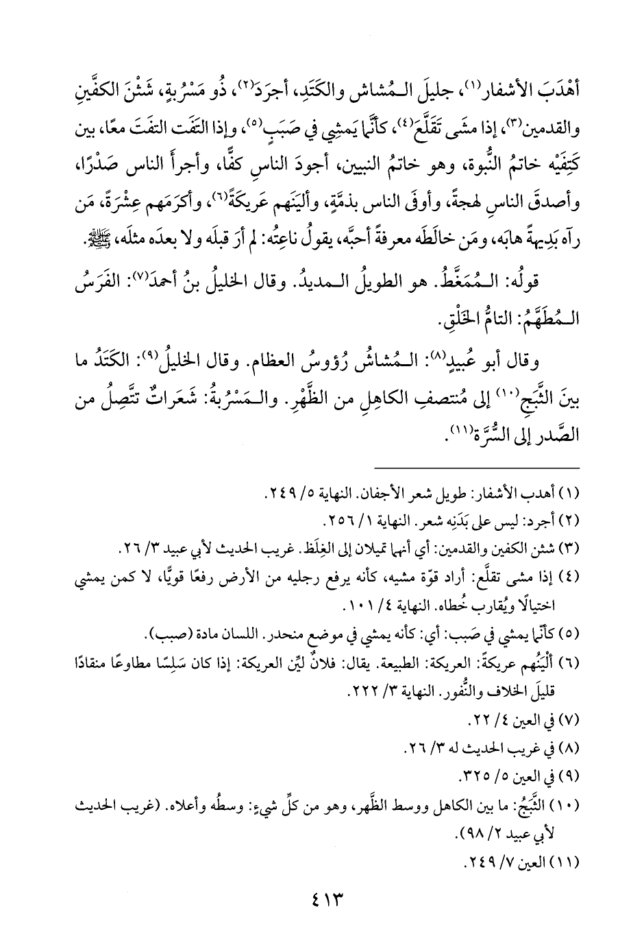 (¬٣) شثن الكفين والقدمين: أي أنهما تميلان إلى الغِلَظ. غريب الحديث لأبي عبيد ٣/ ٢٦.