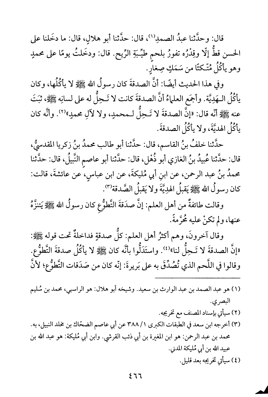 حدَّثنا خلفُ بنُ القاسم، قال: حدَّثنا أبو طالب محمدُ بنُ زكريا المقدسيُّ، قال: حدَّثنا عُبيدُ بنُ الغازي أبو ذُهْل، قال: حدَّثنا أبو عاصمٍ النَّبيلُ، قال: حدَّثنا محمدُ بنُ عبد الرحمن، عن ابنِ أبي مُليكةَ، عن ابن عباسٍ، عن عائشةَ، قالت: كان رسولُ الله - صلى الله عليه وسلم - يَقبلُ الهدِيَّةَ ولا يَقبلُ الصدقة (¬٣).