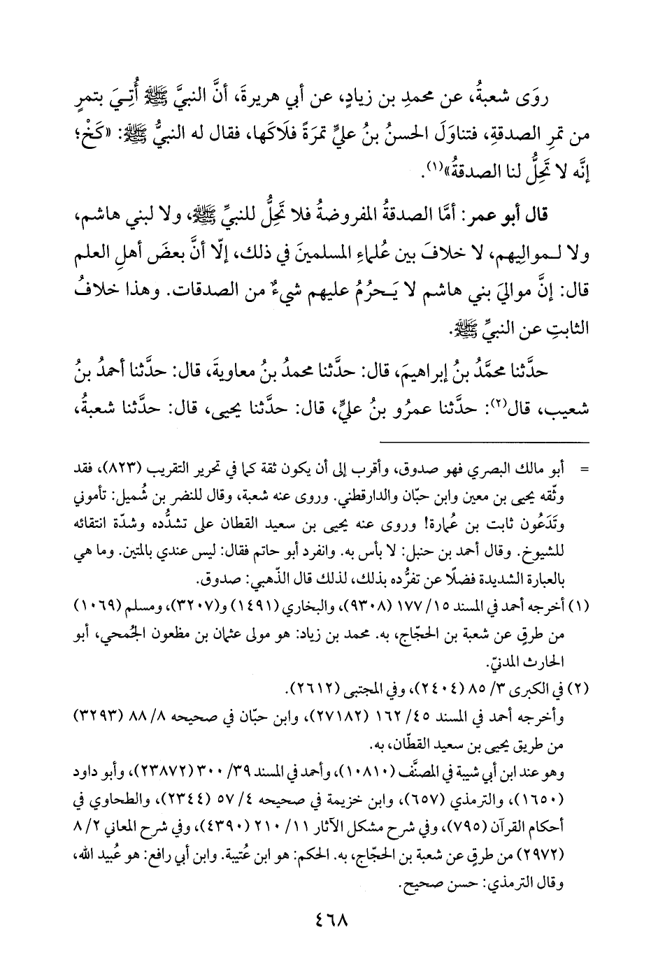 حدَّثنا محمَّدُ بنُ إبراهيمَ، قال: حدَّثنا محمدُ بنُ معاويةَ، قال: حدَّثنا أحمدُ بنُ شعيب، قال (¬٢): حدَّثنا عمرُو بنُ عليٍّ، قال: حدَّثنا يحيى، قال: حدَّثنا شعبةُ،