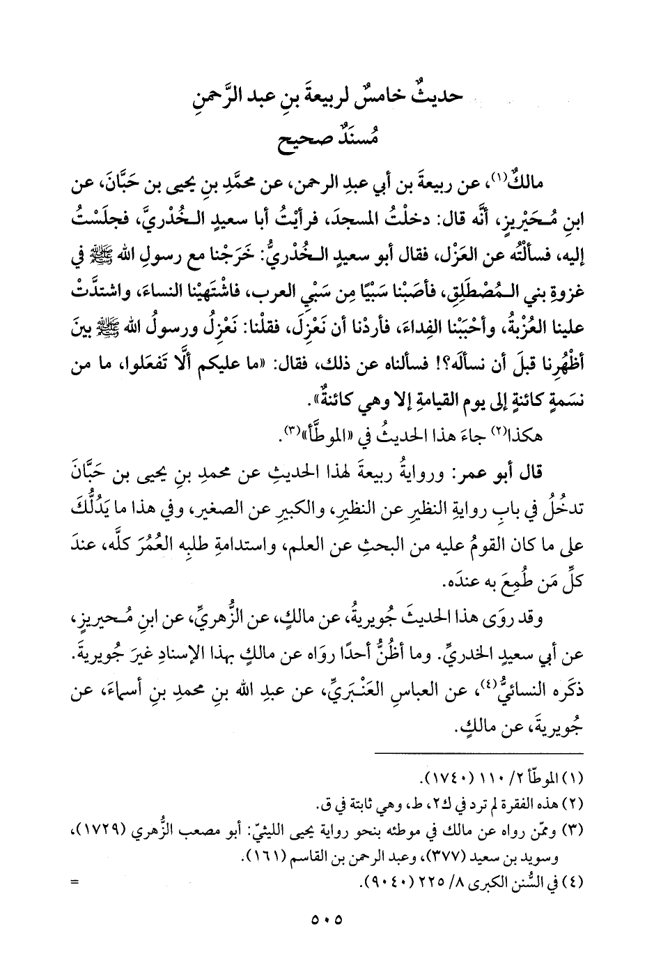 حديثٌ خامسٌ لربيعةَ بنِ عبد الرَّحمنِ مُسنَدٌ صحيح