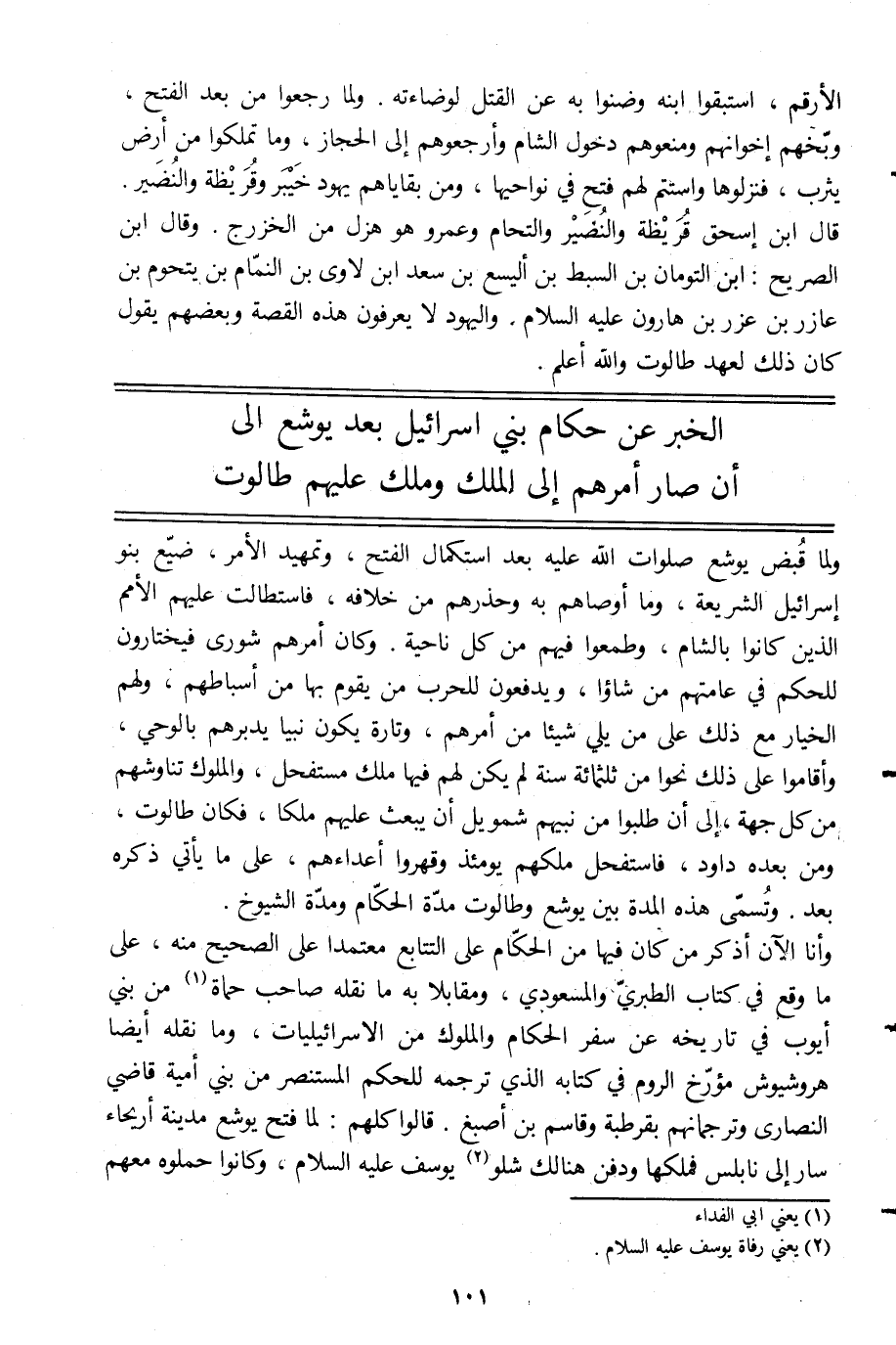 الخبر عن حكام بني إسرائيل بعد يوشع الى أن صار أمرهم إلى الملك وملك عليهم طالوت