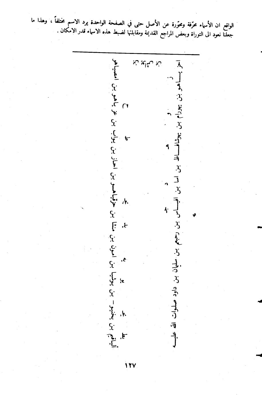 الواقع ان الأسماء محرّفة ومحوّرة عن الأصل حتى في الصفحة الواحدة يرد الاسم مختلفا، وهذا ما جعلنا نعود الى التوراة وبعض المراجع القديمة ومقابلتها لضبط هذه الأسماء قدر الإمكان.