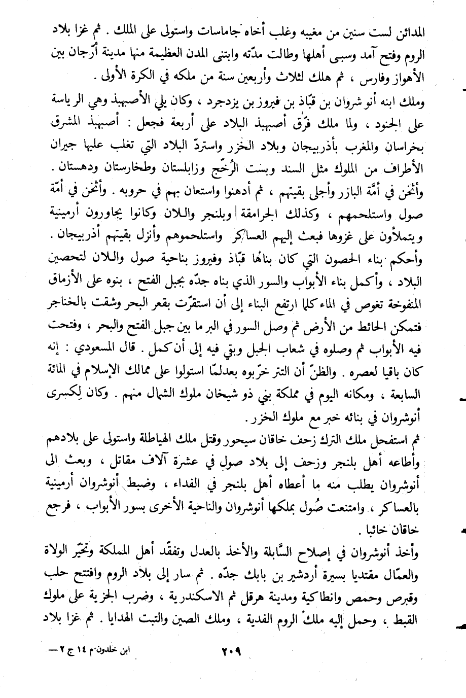وملك ابنه أنوشروان بن قبّاذ بن فيروز بن يزدجرد، وكان يلي الأصبهبذ وهي الرئاسة على الجنود، ولما ملك فرّق أصبهبذ البلاد على أربعة فجعل: أصبهبذ المشرق بخراسان والمغرب بأذربيجان وبلاد الخزر واستردّ البلاد التي تغلب عليها جيران الأطراف من الملوك مثل السند وبست الرخّج وزابلستان وطخارستان ودهستان.