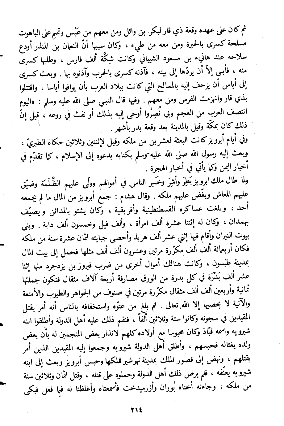 وفي أيام أبرويز كانت البعثة لعشرين من ملكه وقيل لاثنتين وثلاثين حكاه الطبريّ، وبعث إليه رسول الله صلى الله عليه وسلم بكتابه يدعوه إلى الإسلام، كما تقدّم في أخبار اليمن وكما يأتي في أخبار الهجرة.