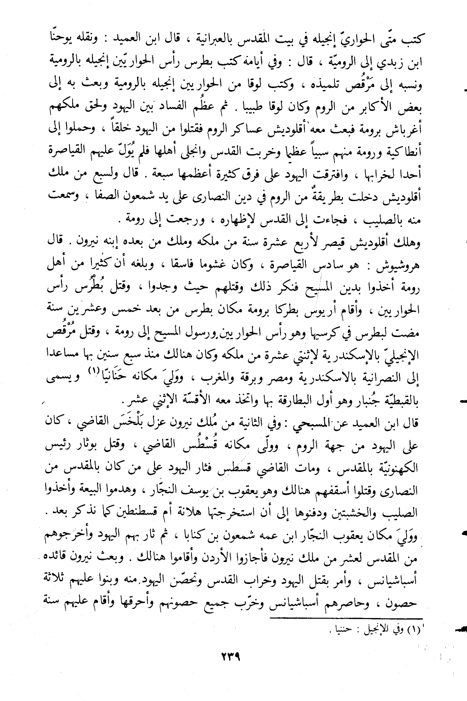 كتب متّى الحواريّ إنجيله في بيت المقدس بالعبرانية، قال ابن العميد، ونقله يوحنّا ابن زبدي إلى الروميّة، قال: وفي أيامه كتب بطرس رأس الحواريّين إنجيله بالرومية ونسبه إلى مرقص تلميذه، وكتب لوقا من الحواريين إنجيله بالرومية وبعث به إلى بعض الأكابر من الروم وكان لوقا طبيبا. ثم عظم الفساد بين اليهود ولحق ملكهم أغرباس برومة فبعث معه أقلوديش عساكر الروم فقتلوا من اليهود خلقا، وحملوا إلى أنطاكية ورومة منهم سبيا عظيما وخربت القدس وانجلى أهلها فلم يولّ عليهم القياصرة أحدا لخرابها، وافترقت اليهود على فرق كثيرة أعظمها سبعة. قال ولسبع من ملك أقلوديش دخلت بطريقة من الروم في دين النصارى على يد شمعون الصفا، وسمعت منه بالصليب، فجاءت إلى القدس لإظهاره، ورجعت إلى رومة.