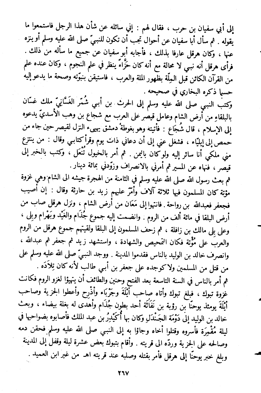 إلى أبي سفيان بن حرب، فقال لهم: إنّي سائله عن شأن هذا الرجل فاستمعوا ما يقوله. ثم سأل أبا سفيان عن أحوال تجب أن تكون للنبيّ صلى الله عليه وسلم أو ينزه عنها، وكان هرقل عارفا بذلك، فأجابه أبو سفيان عن جميع ما سأله من ذلك.