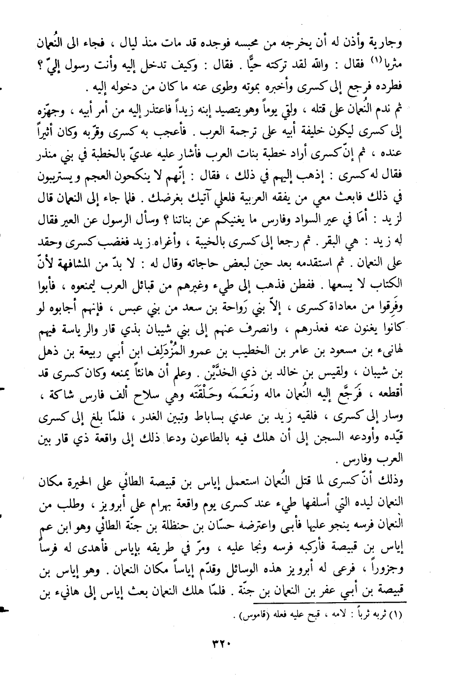 وجارية وأذن له أن يخرجه من محبسه فوجده قد مات منذ ليال، فجاء الى النعمان مثربا [1] فقال: والله لقد تركته حيّا. فقال: وكيف تدخل إليه وأنت رسول إليّ؟