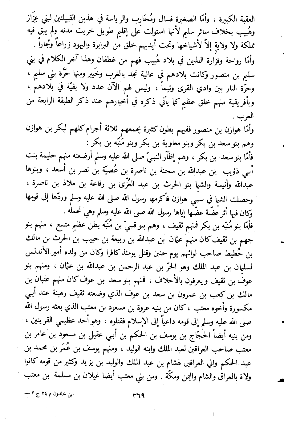 وأمّا رواحة وفزارة اللذين في بلاد هبيب فهم من غطفان وهذا آخر الكلام في بني سليم بن منصور وكانت بلادهم في عالية نجد بالغرب وخيبر ومنها حرّة بني سليم، وحرّة النار بين وادي القرى وتيماء، وليس لهم الآن عدد ولا بقيّة في بلادهم، وبإفريقية منهم خلق عظيم كما يأتي ذكره في أخبارهم عند ذكر الطبقة الرابعة من العرب.
